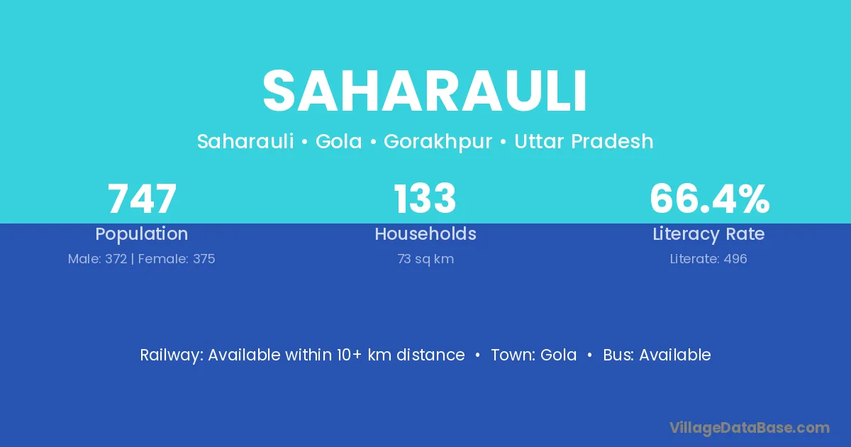 Saharauli village has a total population of 747 people, of which 372 are males and 375 are females.