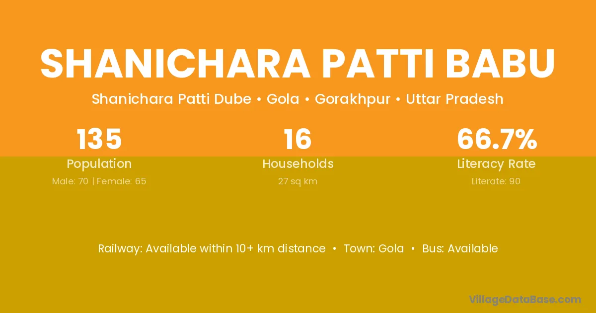 Shanichara Patti Babu village has a total population of 135 people, of which 70 are males and 65 are females.