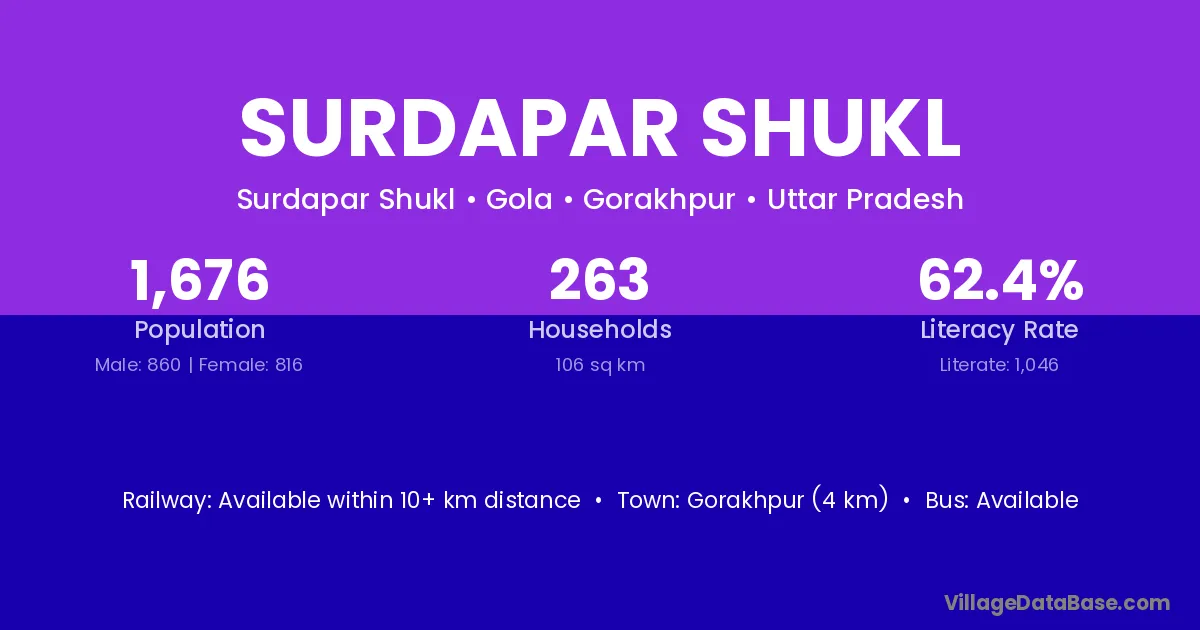 Gorakhpur (4 km) is the nearest town to Surdapar Shukl village for major economic activities and is located approximately 4 km away.