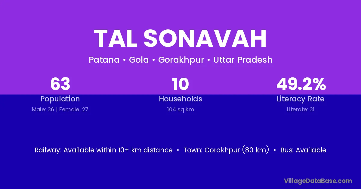 Gorakhpur (80 km) is the nearest town to Tal Sonavah village for major economic activities and is located approximately 80 km away.
