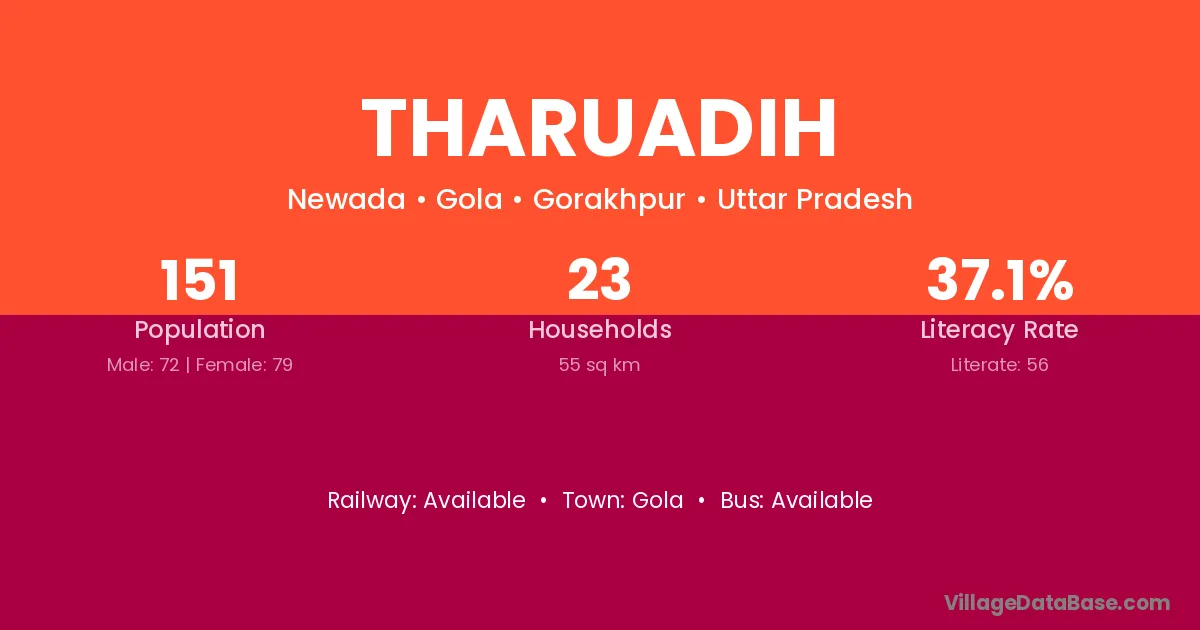 Tharuadih village has a total population of 151 people, of which 72 are males and 79 are females.
