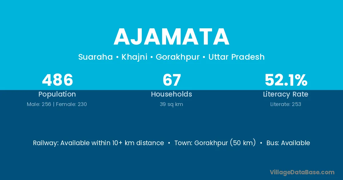 Gorakhpur (50 km) is the nearest town to Ajamata village for major economic activities and is located approximately 50 km away.