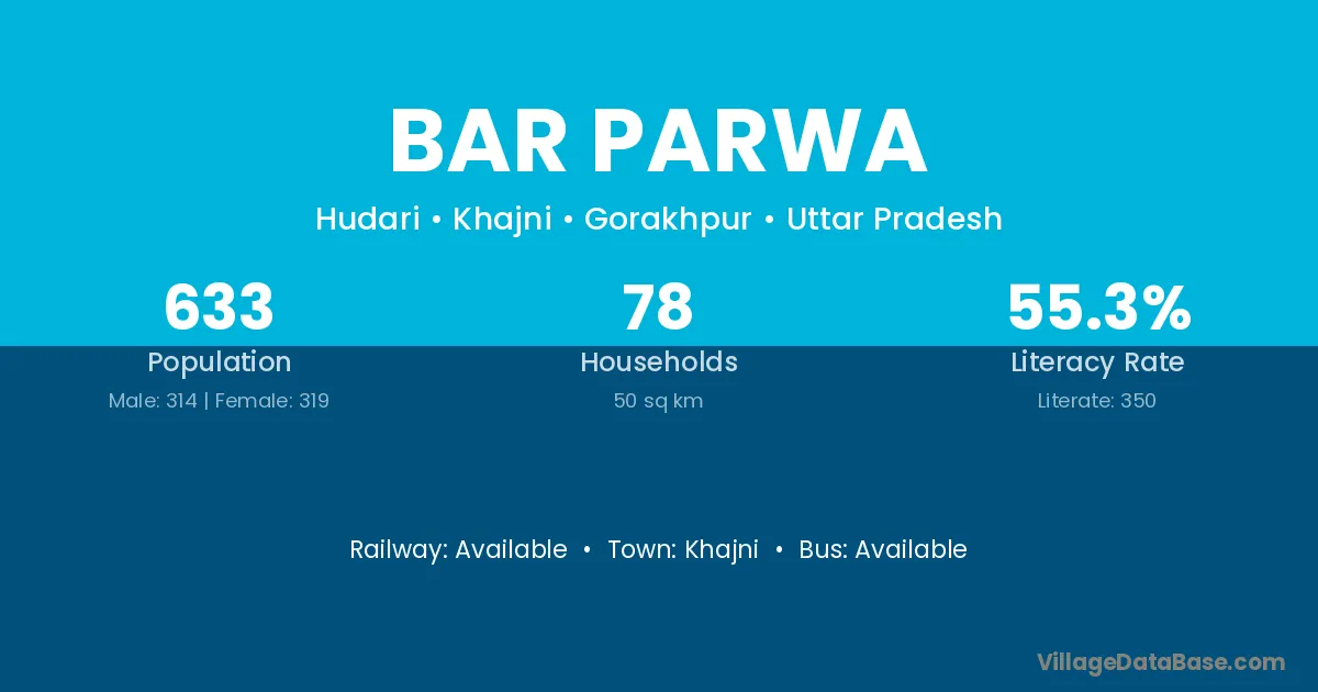 Bar Parwa village has a total population of 633 people, of which 314 are males and 319 are females.