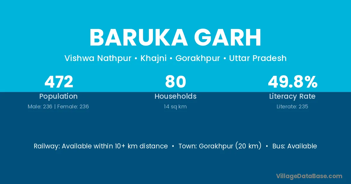 Gorakhpur (20 km) is the nearest town to Baruka Garh village for major economic activities and is located approximately 20 km away.
