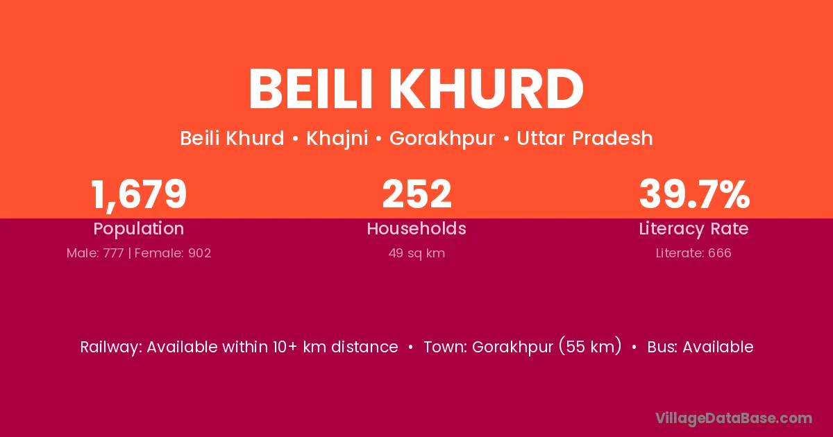 Gorakhpur (55 km) is the nearest town to Beili Khurd village for major economic activities and is located approximately 55 km away.