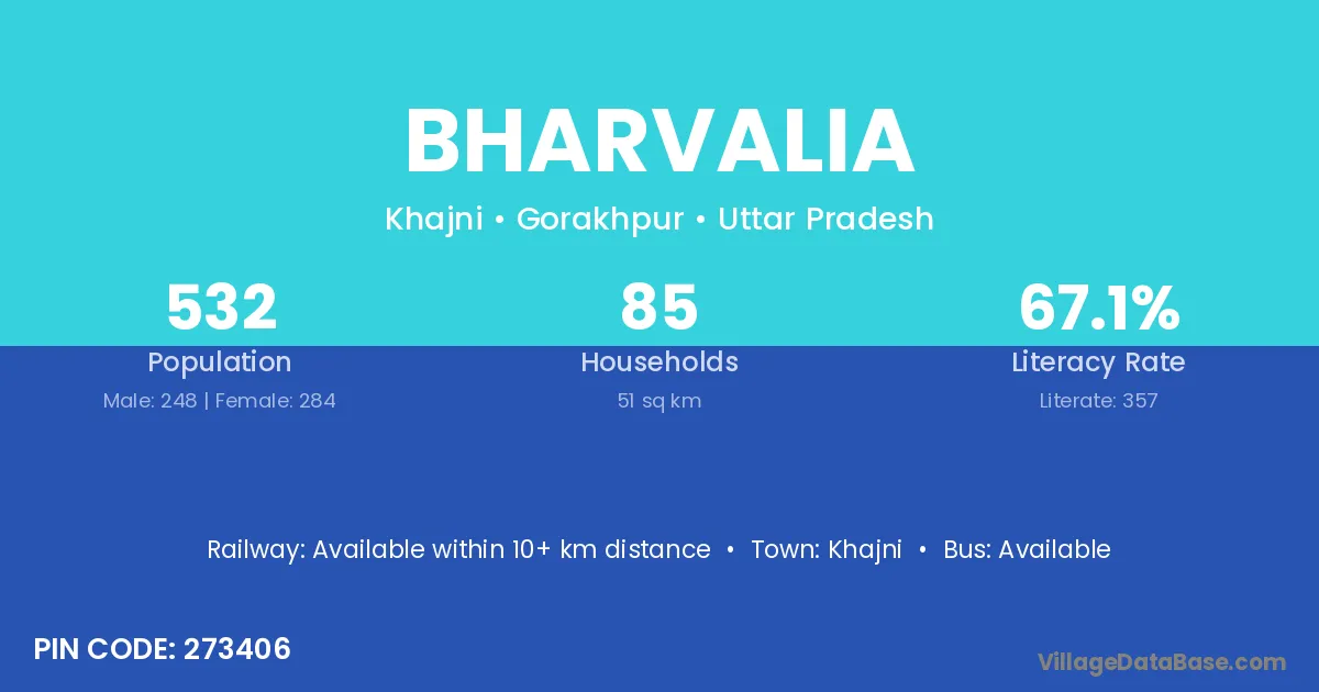 According to Census 2011 information, the village code of Bharvalia village is 273406.