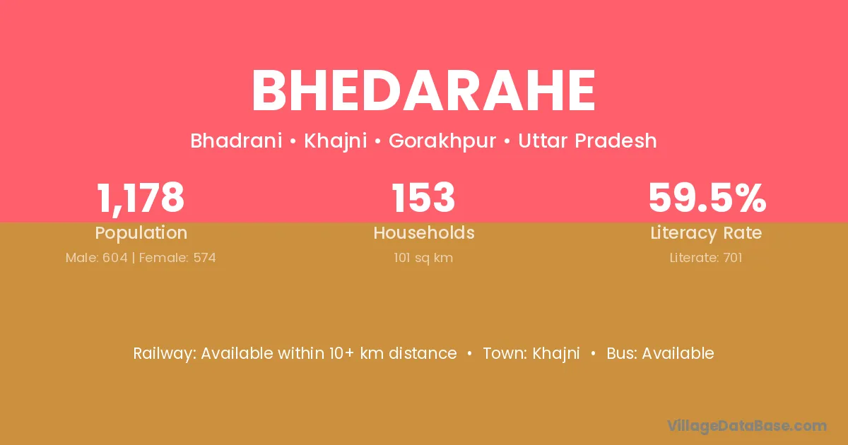 Bhedarahe village has a total population of 1,178 people, of which 604 are males and 574 are females.