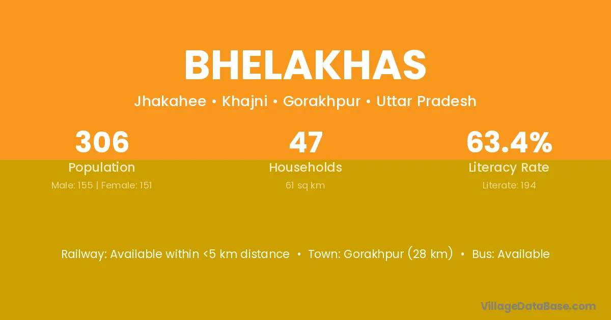 Gorakhpur (28 km) is the nearest town to Bhelakhas village for major economic activities and is located approximately 28 km away.