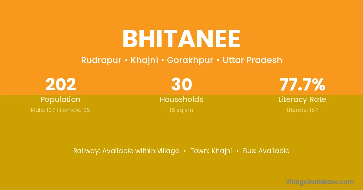 Bhitanee village has a total population of 202 people, of which 107 are males and 95 are females.