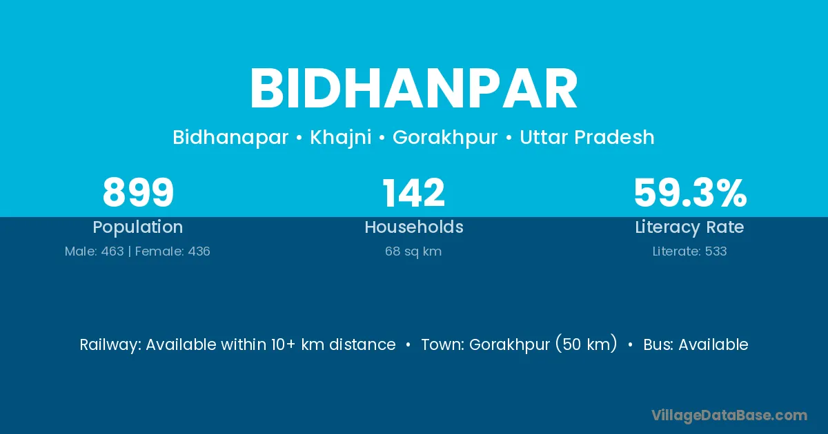 Gorakhpur (50 km) is the nearest town to Bidhanpar village for major economic activities and is located approximately 50 km away.