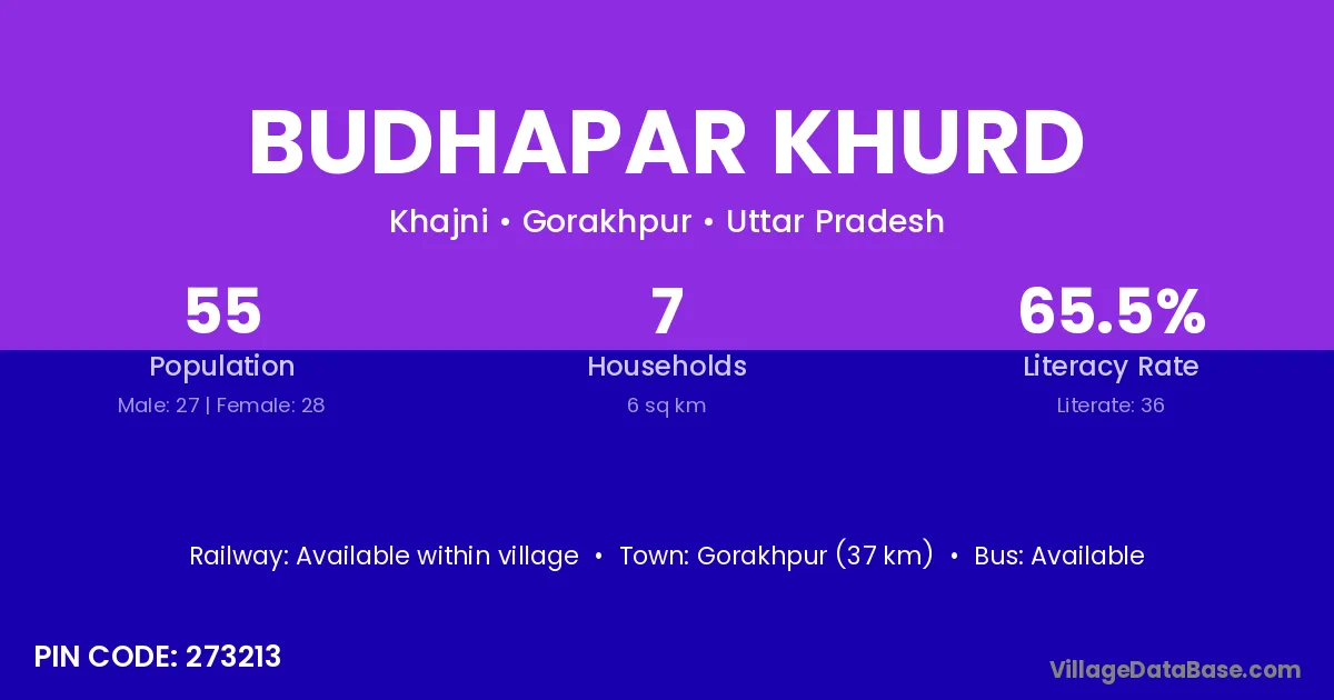 Gorakhpur (37 km) is the nearest town to Budhapar Khurd village for major economic activities and is located approximately 37 km away.