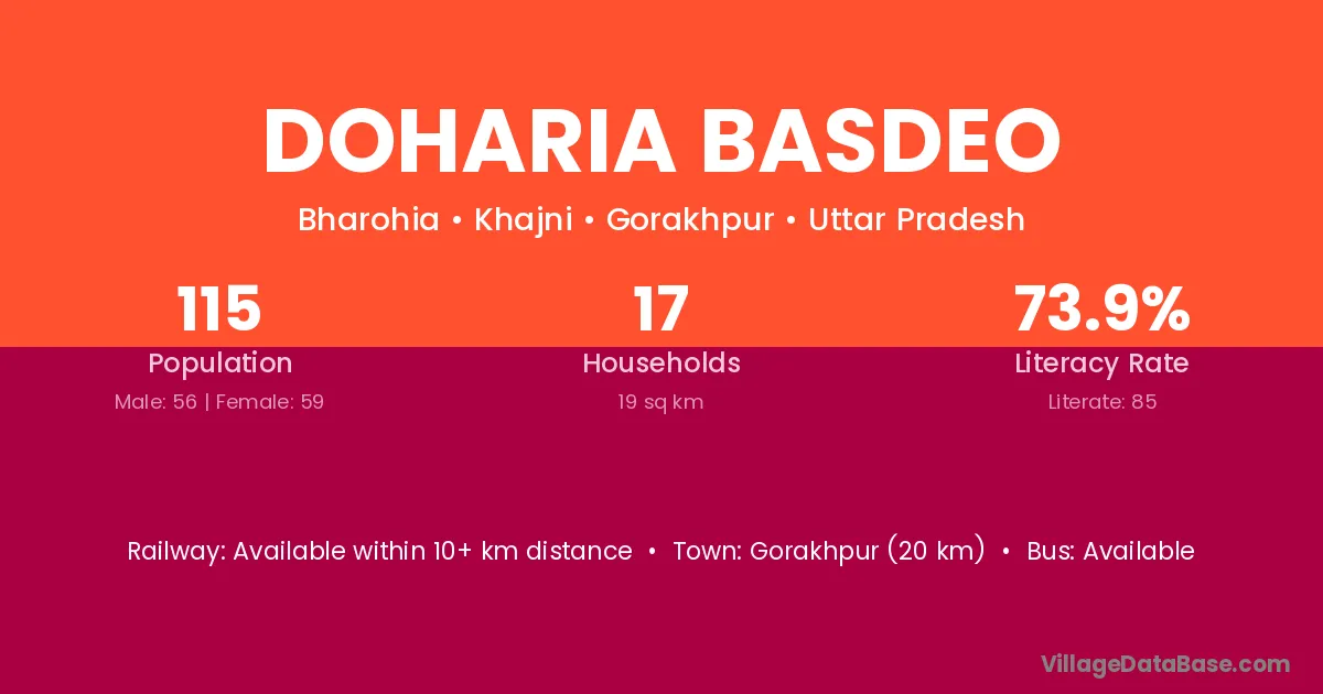 Doharia Basdeo village has a total population of 115 people, of which 56 are males and 59 are females.