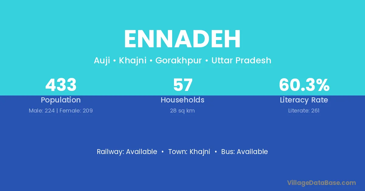 Ennadeh village has a total population of 433 people, of which 224 are males and 209 are females.