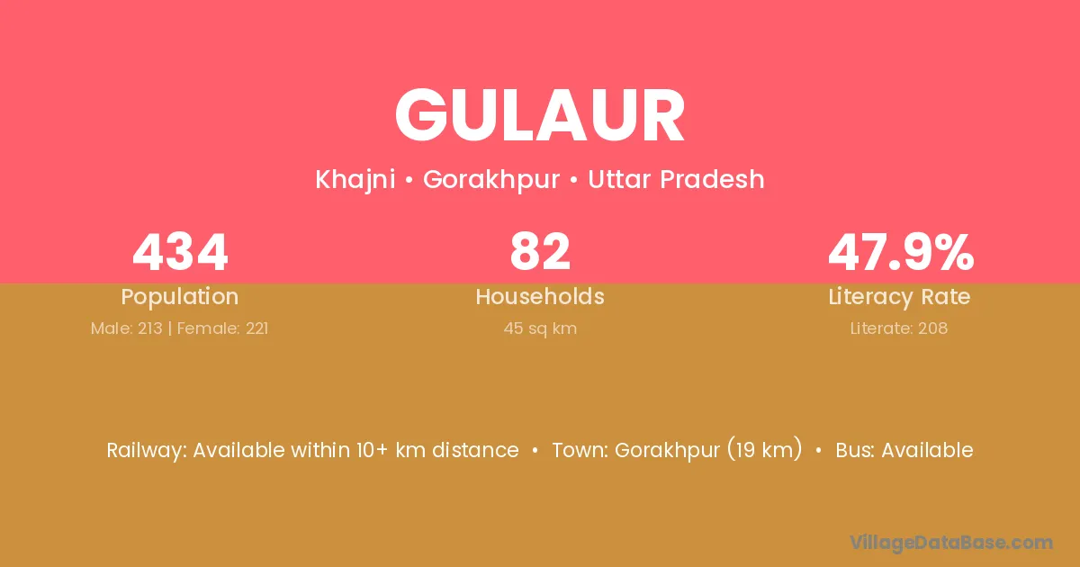 Gorakhpur (19 km) is the nearest town to Gulaur village for major economic activities and is located approximately 19 km away.