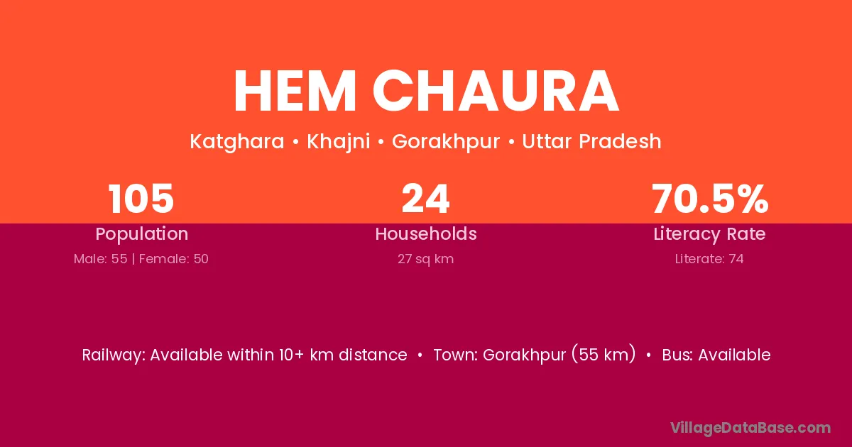 Gorakhpur (55 km) is the nearest town to Hem Chaura village for major economic activities and is located approximately 55 km away.