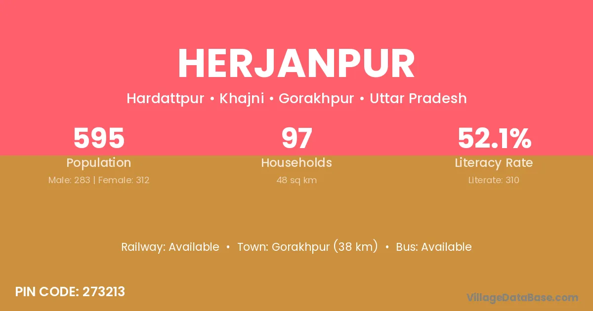 Gorakhpur (38 km) is the nearest town to Herjanpur village for major economic activities and is located approximately 38 km away.