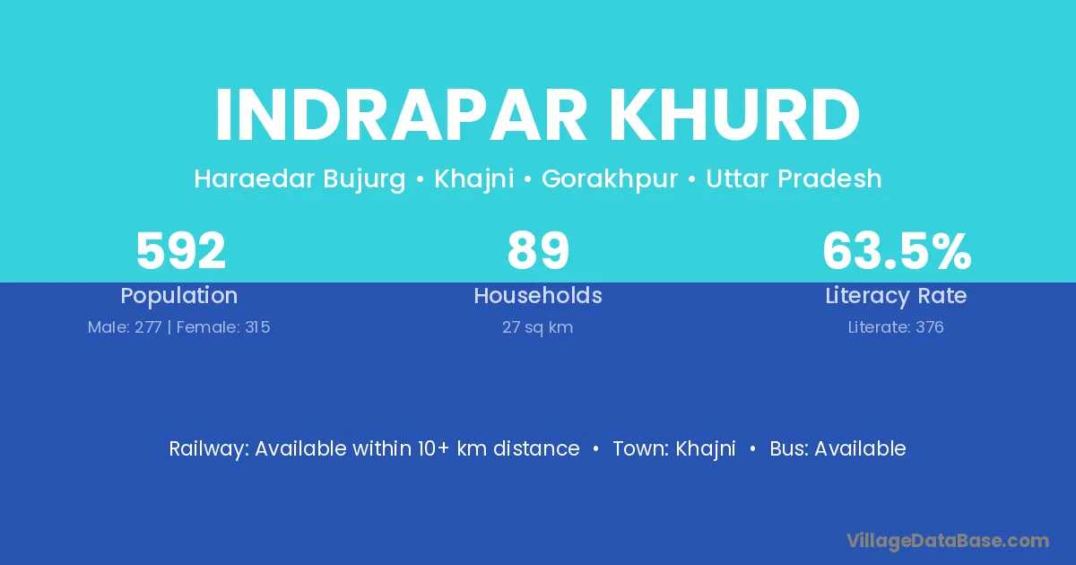 Indrapar Khurd village has a total population of 592 people, of which 277 are males and 315 are females.