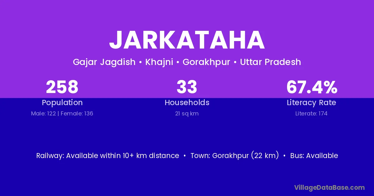 Gorakhpur (22 km) is the nearest town to Jarkataha village for major economic activities and is located approximately 22 km away.