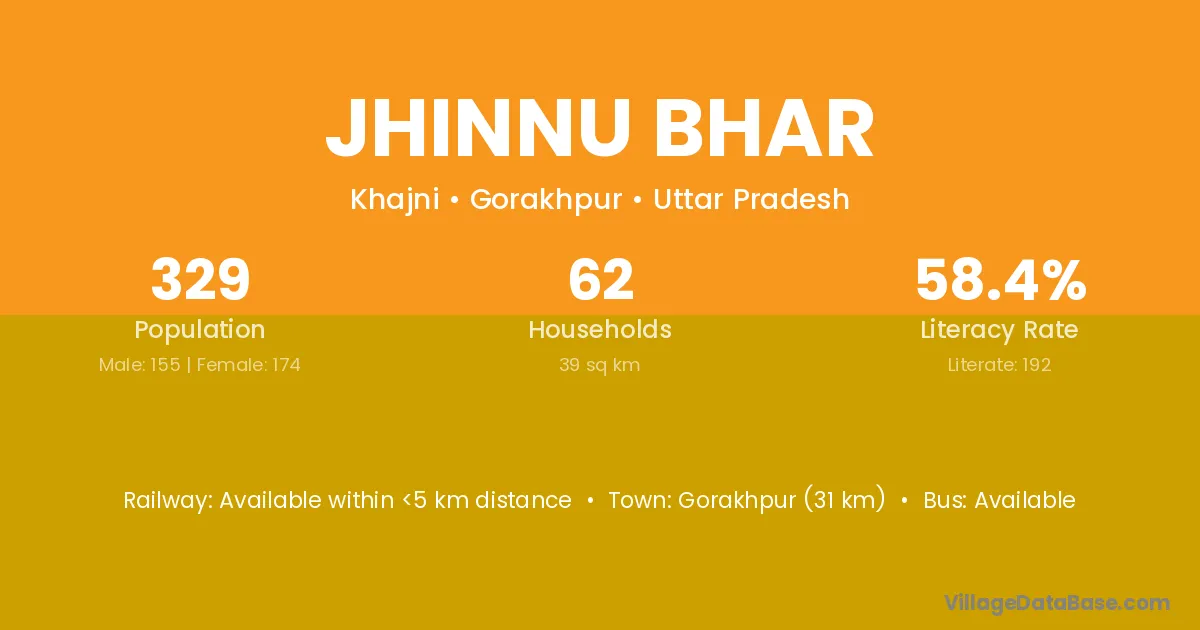 Gorakhpur (31 km) is the nearest town to Jhinnu Bhar village for major economic activities and is located approximately 31 km away.