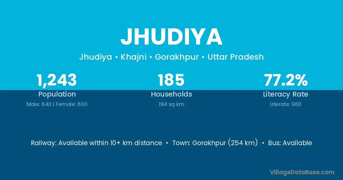 Gorakhpur (254 km) is the nearest town to Jhudiya village for major economic activities and is located approximately 254 km away.