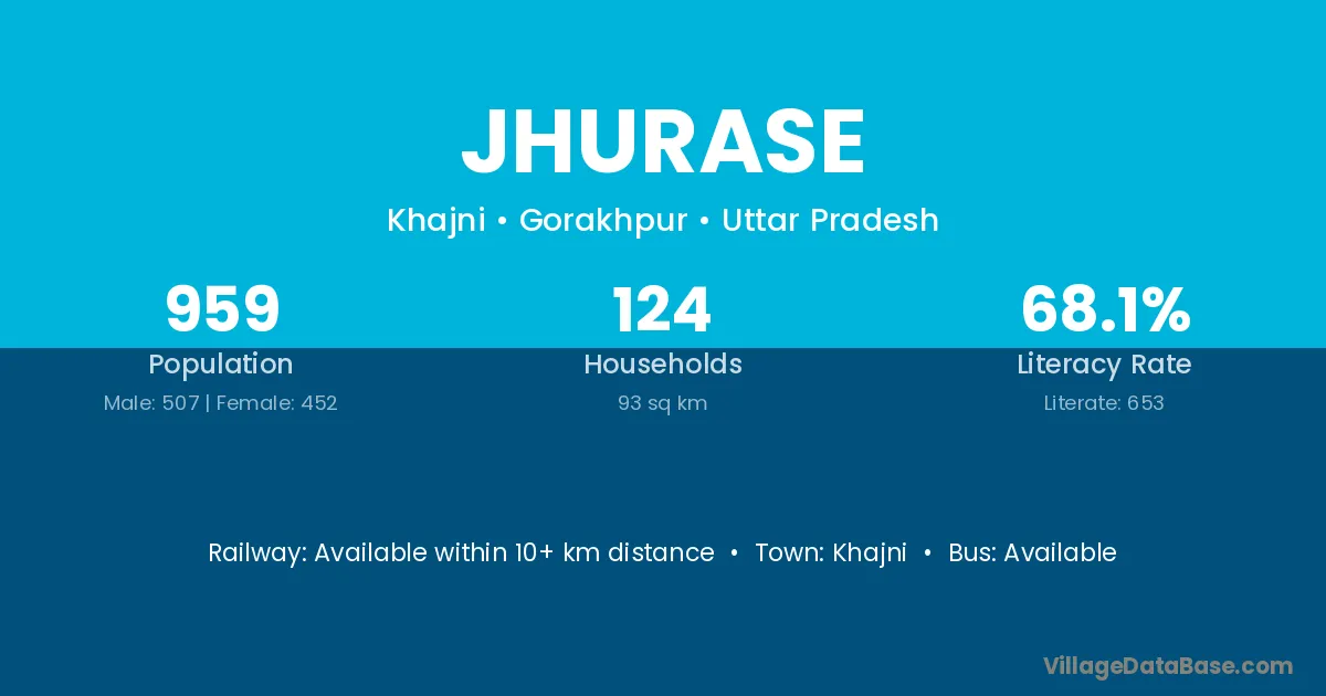 Jhurase village has a total population of 959 people, of which 507 are males and 452 are females.
