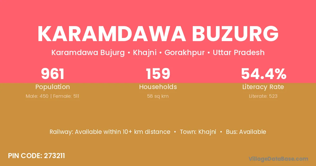 Karamdawa Buzurg village has a total population of 961 people, of which 450 are males and 511 are females.