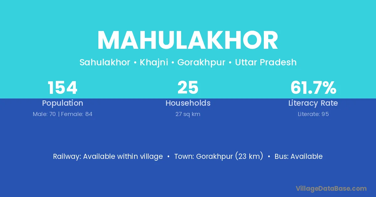 Gorakhpur (23 km) is the nearest town to Mahulakhor village for major economic activities and is located approximately 23 km away.