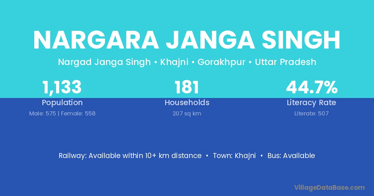 Nargara Janga Singh village has a total population of 1,133 people, of which 575 are males and 558 are females.