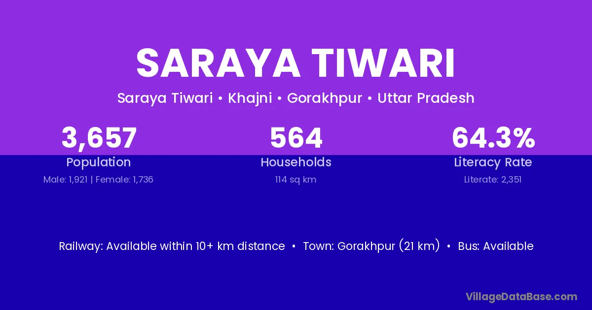 Gorakhpur (21 km) is the nearest town to Saraya Tiwari village for major economic activities and is located approximately 21 km away.