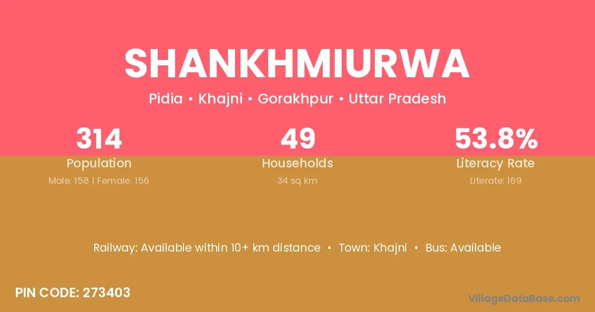 Shankhmiurwa village has a total population of 314 people, of which 158 are males and 156 are females.