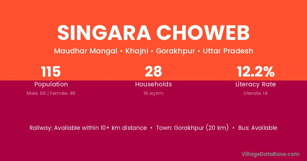Singara Choweb village has a total population of 115 people, of which 66 are males and 49 are females.