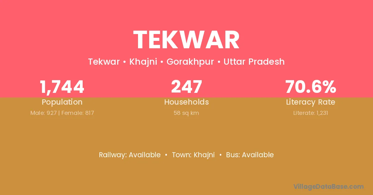 Tekwar village has a total population of 1,744 people, of which 927 are males and 817 are females.