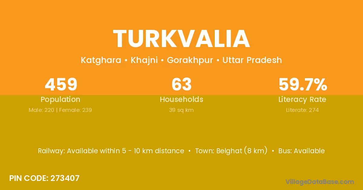 Belghat (8 km) is the nearest town to Turkvalia village for major economic activities and is located approximately 8 km away.