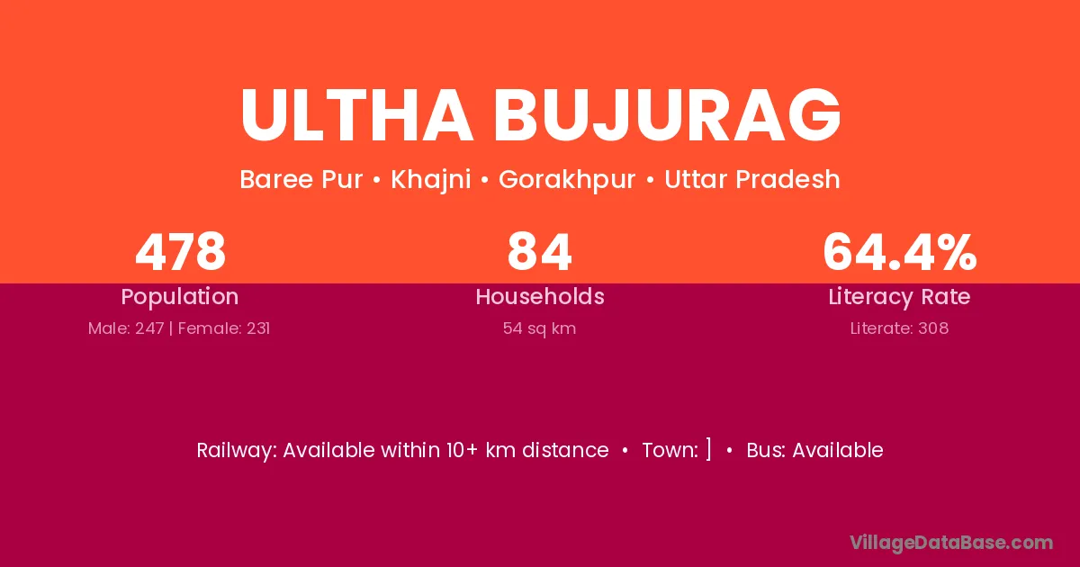 Ultha Bujurag village has a total population of 478 people, of which 247 are males and 231 are females.