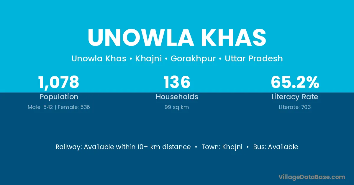 Unowla Khas village has a total population of 1,078 people, of which 542 are males and 536 are females.