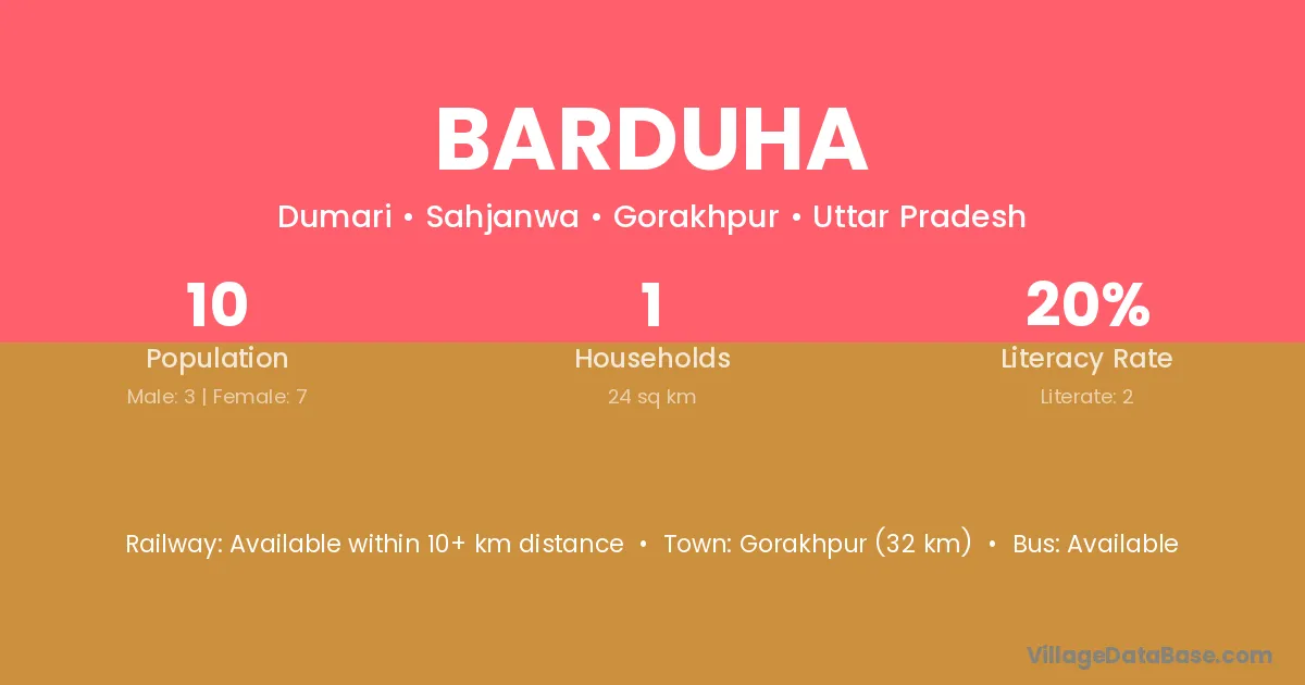 Gorakhpur (32 km) is the nearest town to Barduha village for major economic activities and is located approximately 32 km away.