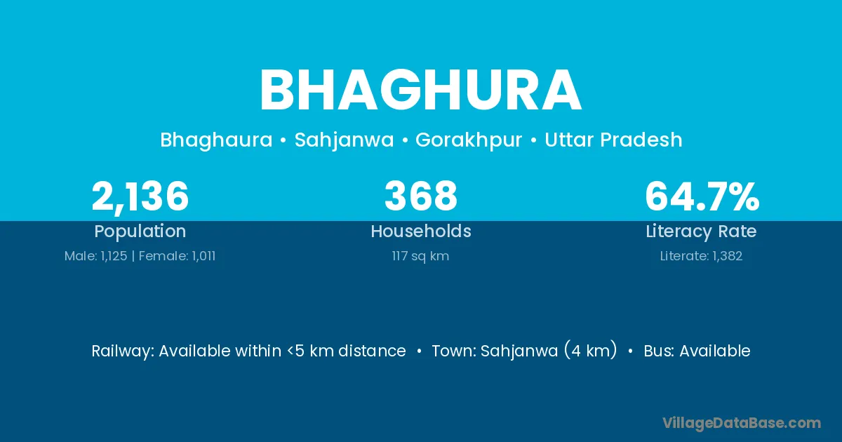 Sahjanwa (4 km) is the nearest town to Bhaghura village for major economic activities and is located approximately 4 km away.