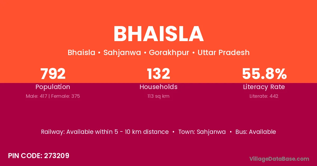 Sahjanwa is the nearest town to Bhaisla village for major economic activities