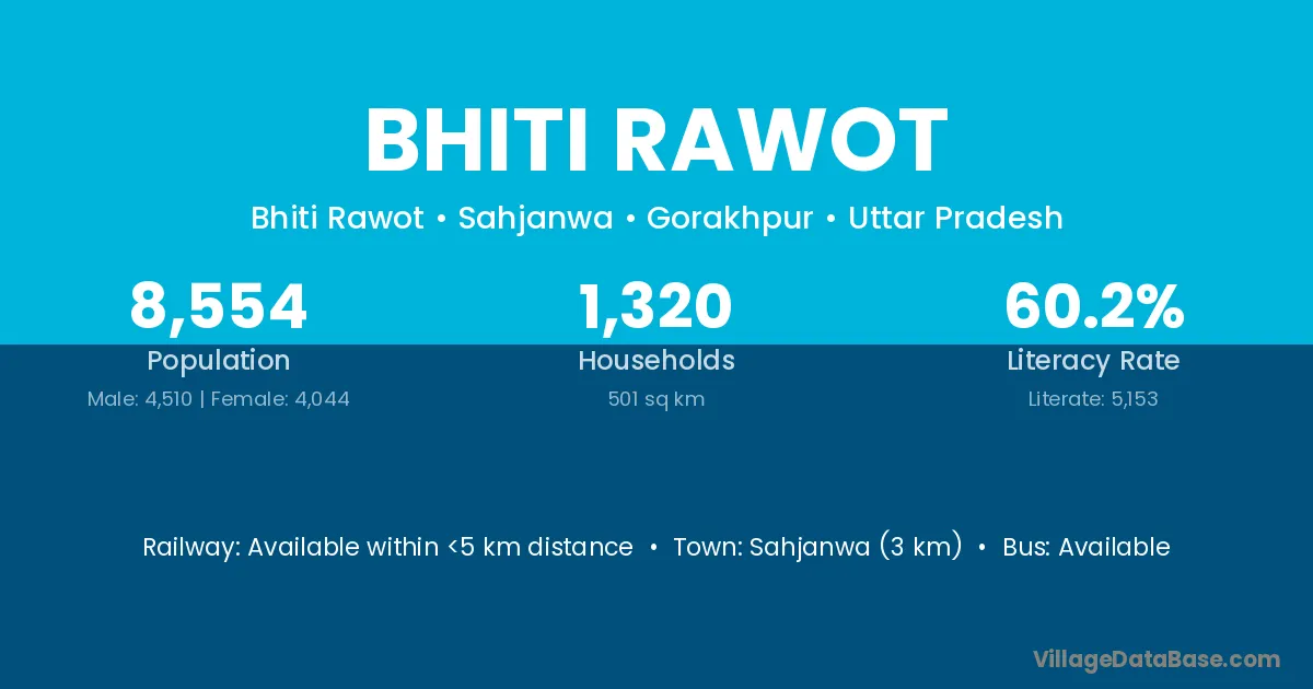 Sahjanwa (3 km) is the nearest town to Bhiti Rawot village for major economic activities and is located approximately 3 km away.
