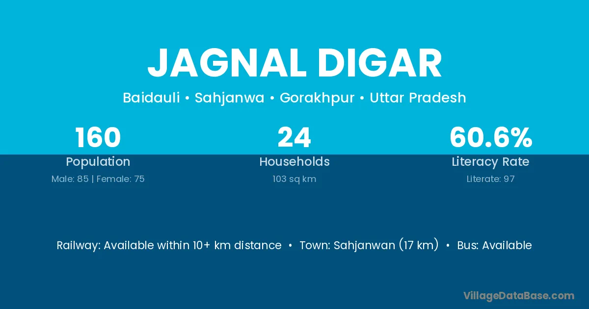 Sahjanwan (17 km) is the nearest town to Jagnal Digar village for major economic activities and is located approximately 17 km away.