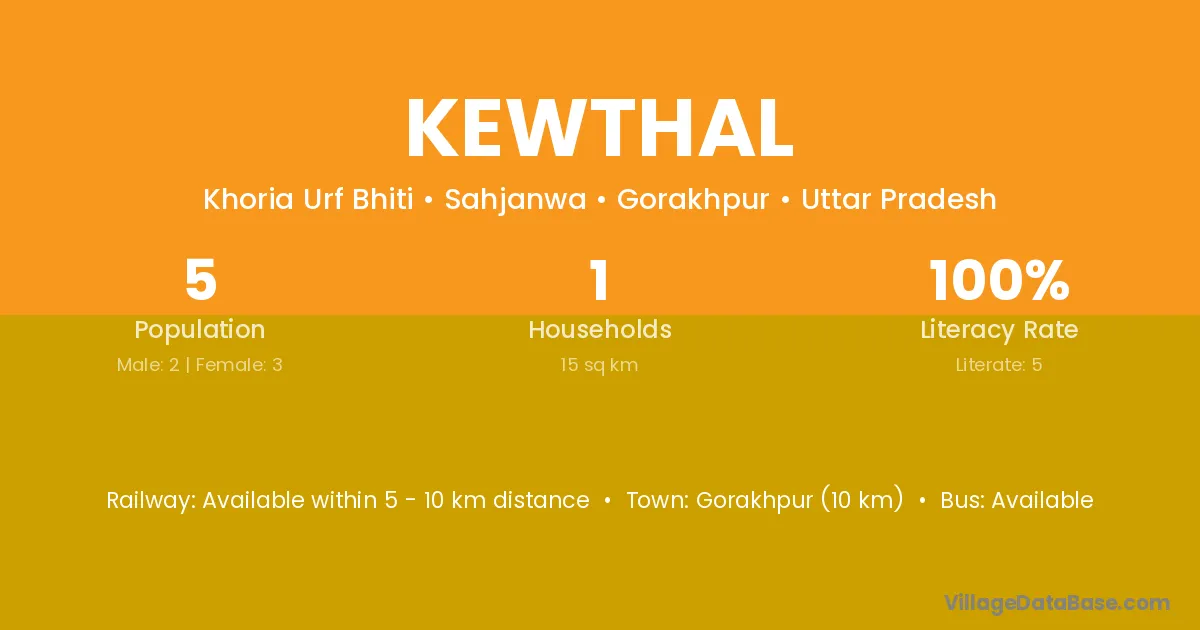 Gorakhpur (10 km) is the nearest town to Kewthal village for major economic activities and is located approximately 10 km away.