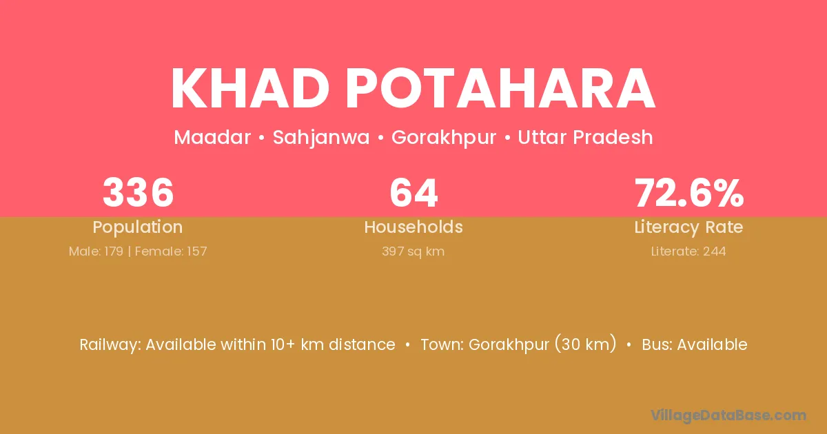 Gorakhpur (30 km) is the nearest town to Khad Potahara village for major economic activities and is located approximately 30 km away.