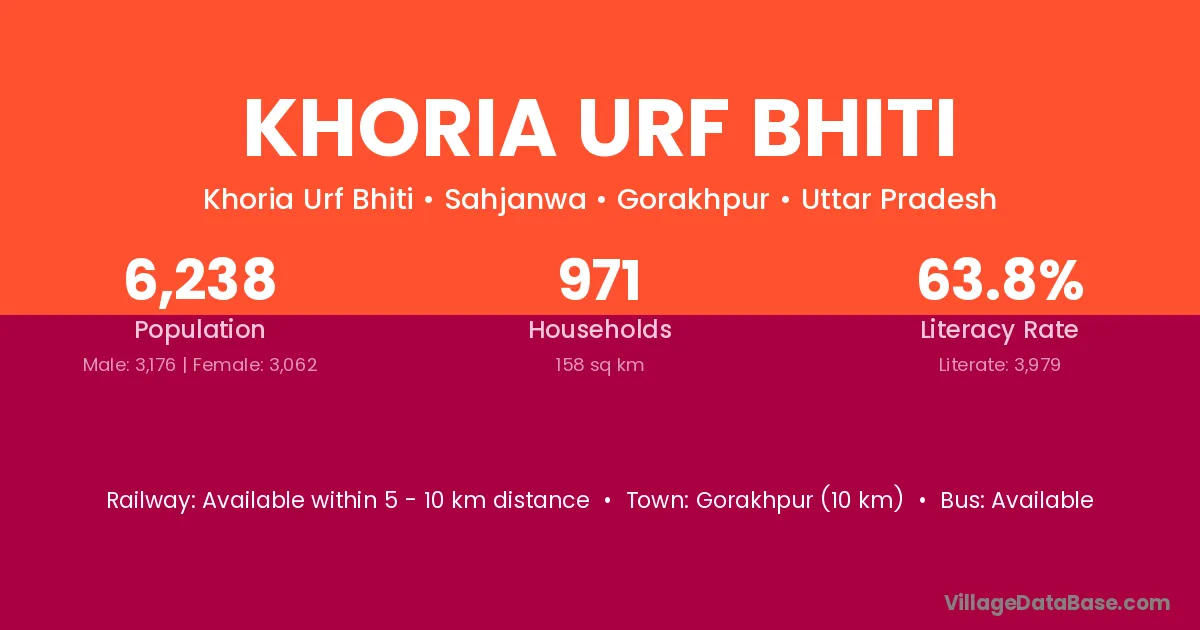 Gorakhpur (10 km) is the nearest town to Khoria Urf Bhiti village for major economic activities and is located approximately 10 km away.