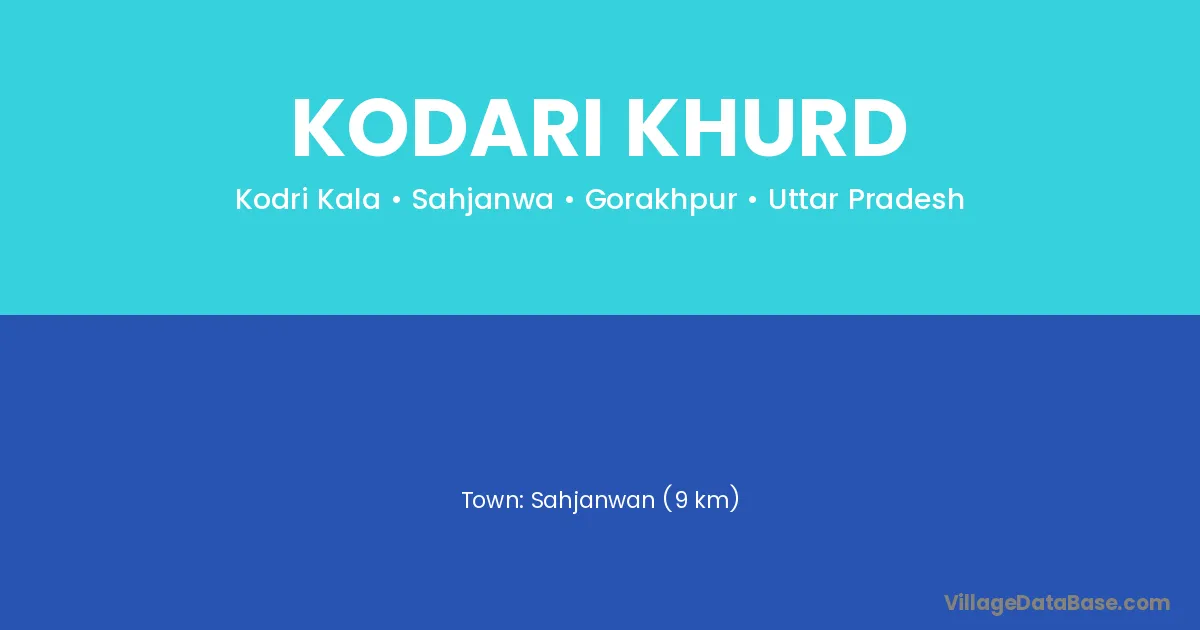 Sahjanwan (9 km) is the nearest town to Kodari Khurd village for major economic activities and is located approximately 9 km away.