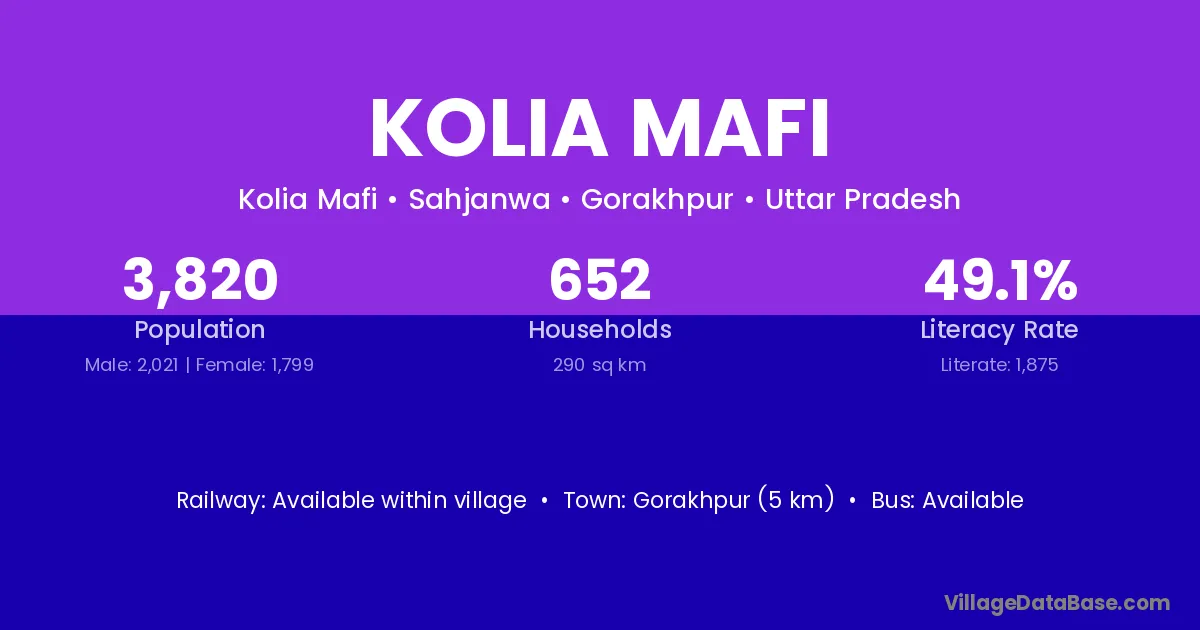 Gorakhpur (5 km) is the nearest town to Kolia Mafi village for major economic activities and is located approximately 5 km away.