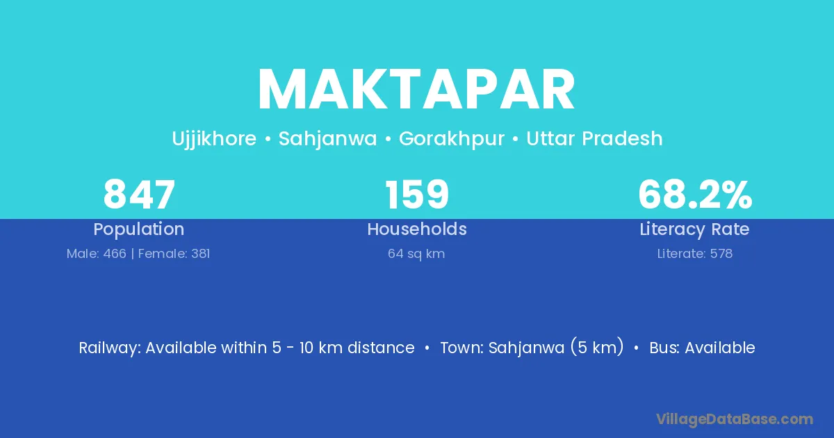 Sahjanwa (5 km) is the nearest town to Maktapar village for major economic activities and is located approximately 5 km away.