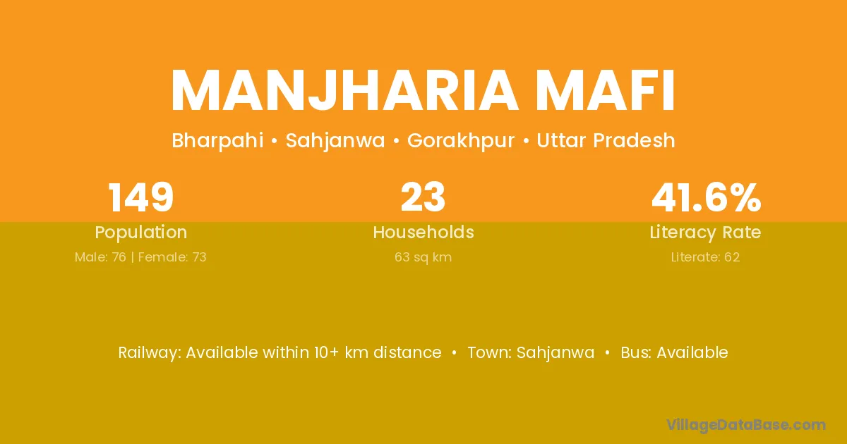Manjharia Mafi village has a total population of 149 people, of which 76 are males and 73 are females.