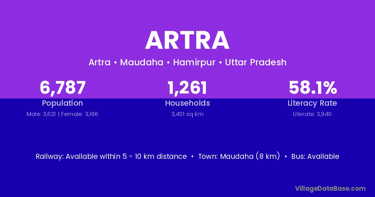 Maudaha (8 km) is the nearest town to Artra village for major economic activities and is located approximately 8 km away.