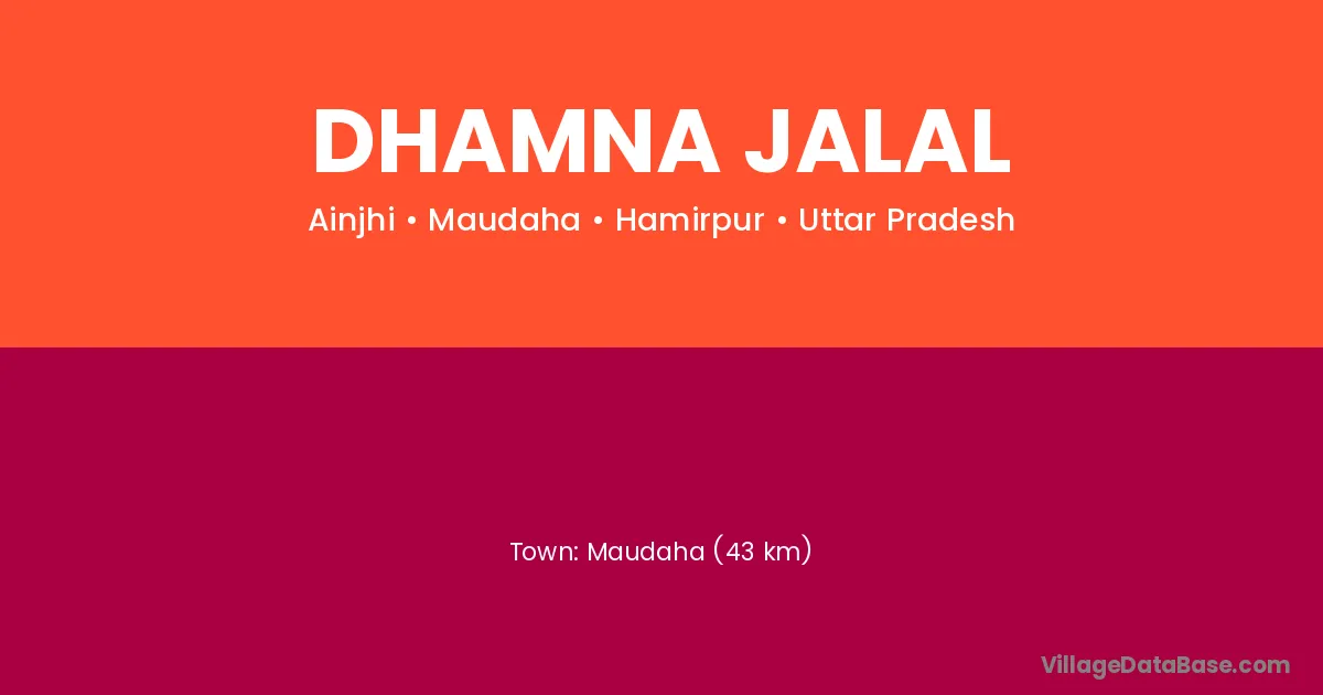 Maudaha (43 km) is the nearest town to Dhamna Jalal village for major economic activities and is located approximately 43 km away.