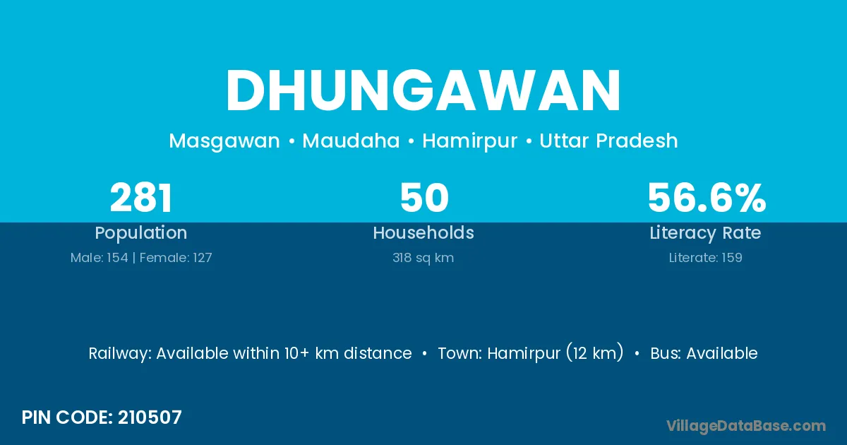 Hamirpur (12 km) is the nearest town to Dhungawan village for major economic activities and is located approximately 12 km away.